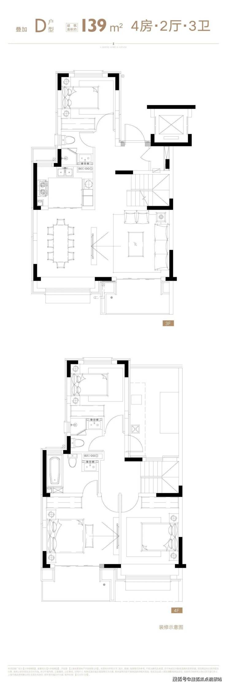 项目叠墅户型有建面约142㎡下叠,建面约139㎡上叠。