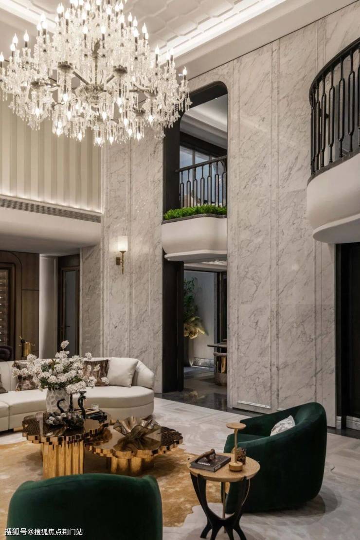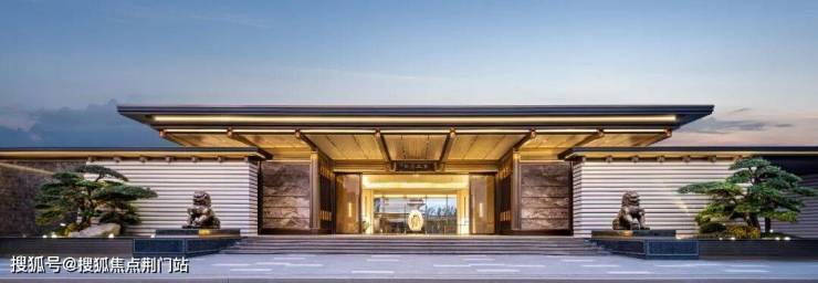 屋檐取形太和殿庑殿顶,两侧铜狮镇守、五步青云阶递进,涌泉灵动,琮黄色调沉稳铺陈。这不仅是归家的仪式,更是家族门风的当代写照,从第一眼即奠定东方礼序与不凡气场。