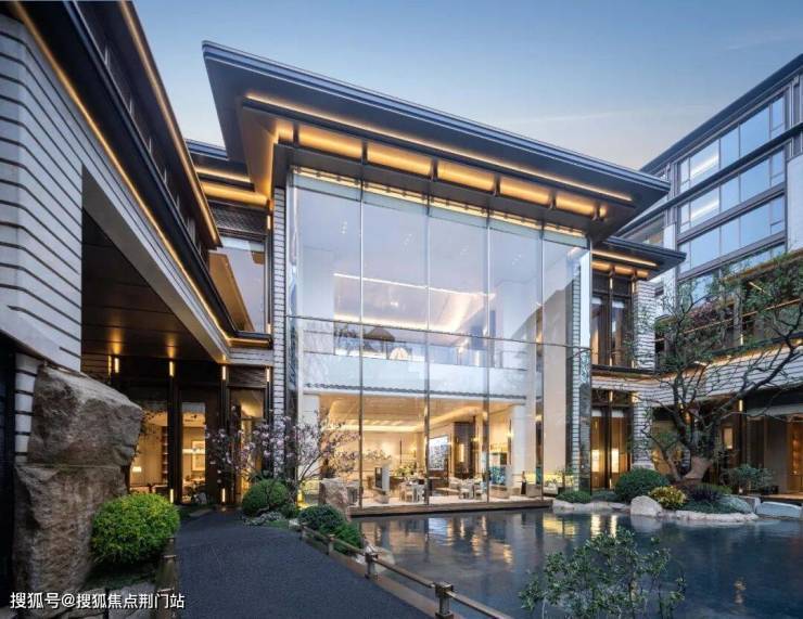 取形良渚高台形制,立面提炼玉琮雕琢技法,材质上甄选四面大面铝板+石材基座,屋檐设计参考宋画引檐,整体上呈现出“金相玉质,东方楼阁”的禅境中式韵味,沉稳大气,历久弥新。