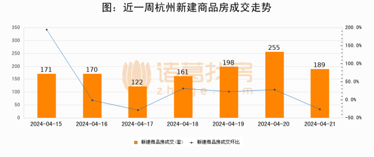 【杭州成交日报】04月21日新房成交189套、二手房194套;涨价房源59套