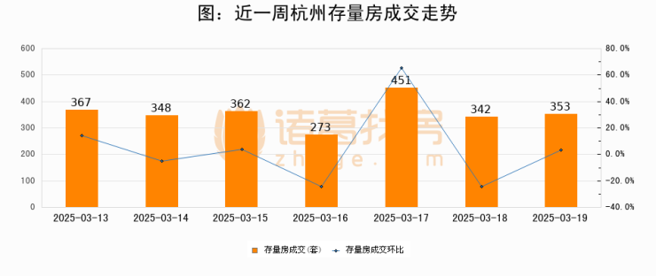 【杭州成交日报】03月19日新房成交198套、二手房353套;涨价房源60套