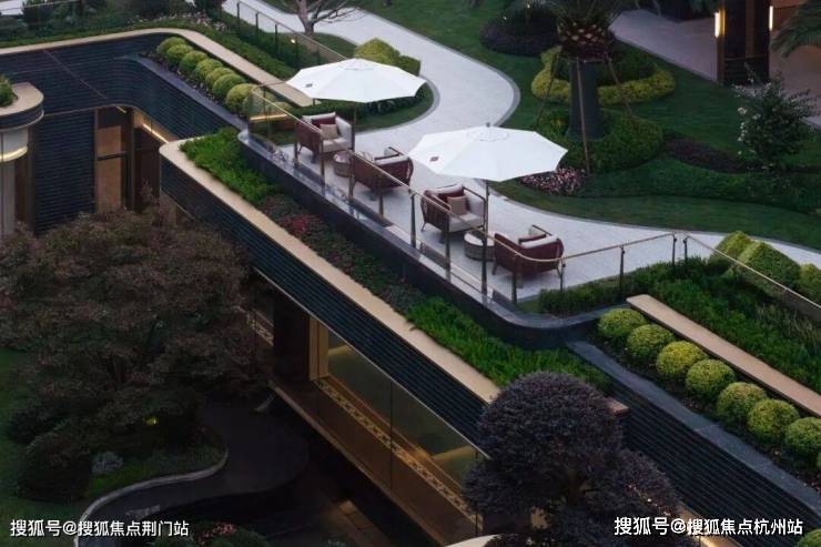 以后这条园林中轴线的景观层次感,还会更丰富,因为下沉式庭院另一边的高层区,还专门做了部分抬高设计,把花园架到了空中。