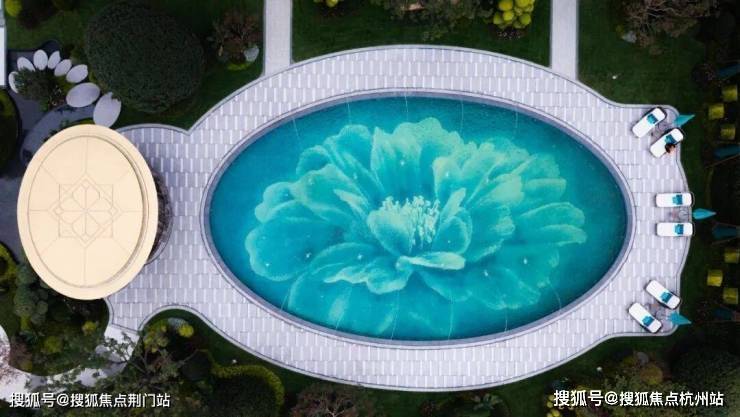 天澜传序府这次在园区里,拉出了一条层次感超强的园林中轴线,它的起点就是叠墅区门口滨江标志性的「蓝宝石」戏水池。
