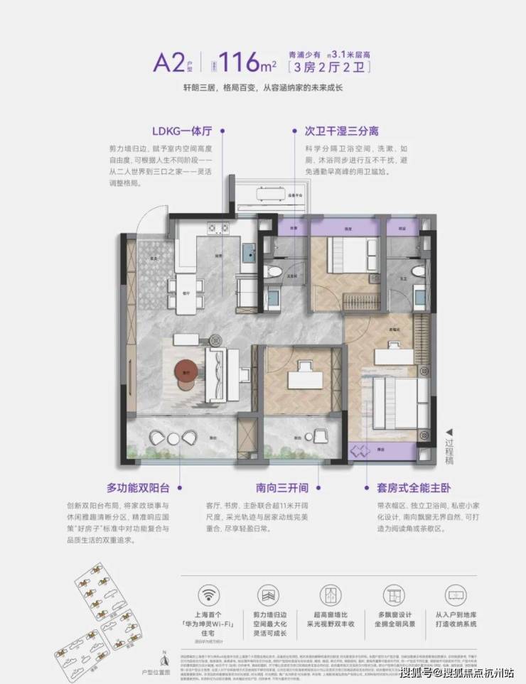 室内精装,除了采用方太厨具、德国高仪的龙头、德国唯宝的陶瓷洁具、科勒的卫浴这样的国内外一线大牌,更重磅打造 上海首个华为坤灵Wi-Fi6智慧入户社区