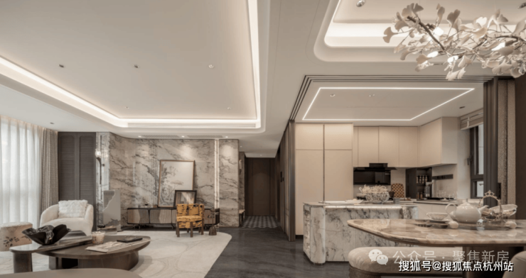 【海上·清和玺】希望业主的每一次归家,都能有属于自己的社交空间。整个前厅的接待空间不是一个过渡空间,而是一个真正为归家营造惬意分享的生活场。