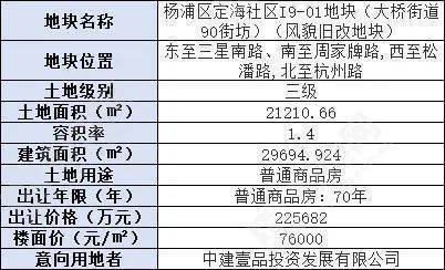 地块北侧是杨浦区N090601单元I4-01地块,出让面积16482.71㎡,容积率1.8,建筑面积29668.87㎡。地块起价213620万元,起始楼面价72001元/㎡。