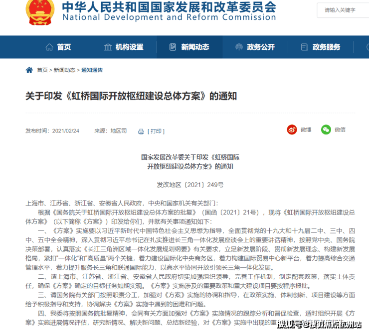 2021年,上海以及长三角最重要的城市规划就是《虹桥国际放开枢纽建设总体方案》获批,意味着作为国际公认的世界六大城市群之一的长三角城市群,一体化建设将进入新的提速征程
