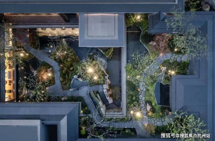 通过下沉会所庭院,将传统平面绿化转化为垂直的多层次园林空间,打造出了当代立体山体水景观,身处其中在步履起承转合间,串联起一幕幕诗画风景。