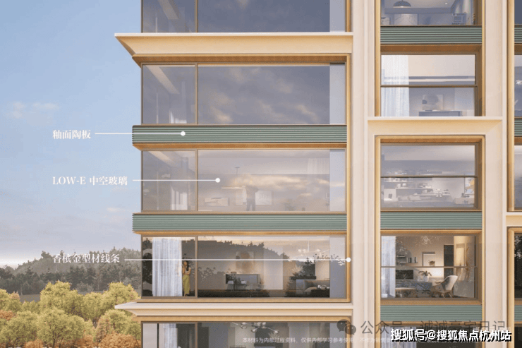 实现上海转角连续约 12米无柱全景舱户型,部分户型 270°转角飘窗以及全景舱户型的落地,贯彻「公园观礼台」主线,将景观充分揽入室内。