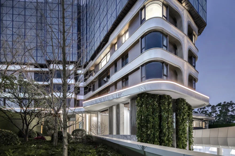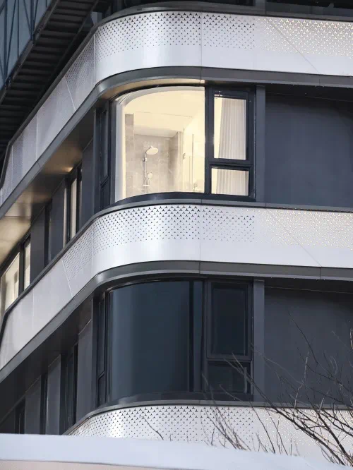 为彰显铂悦·五缘湾上项目“延展、变化、生长、无界”的意涵,设计师希望以渐变的三芒星图案呈现丰富的层次变换,为了达到这种预期的设计效果,需要严苛地从设计图纸、材料样板、模型小样、异地样板墙等研究立面比例和节点、收口细节、颜色等,各种推敲穿孔铝板的实际效果,,在不厌其烦的数十次、甚至数百次打样中,设计师们不断调整、优化每一处细节,不放过每一丝瑕疵,用这种近乎“偏执”的坚持,以较高标准完成自己的作品。
