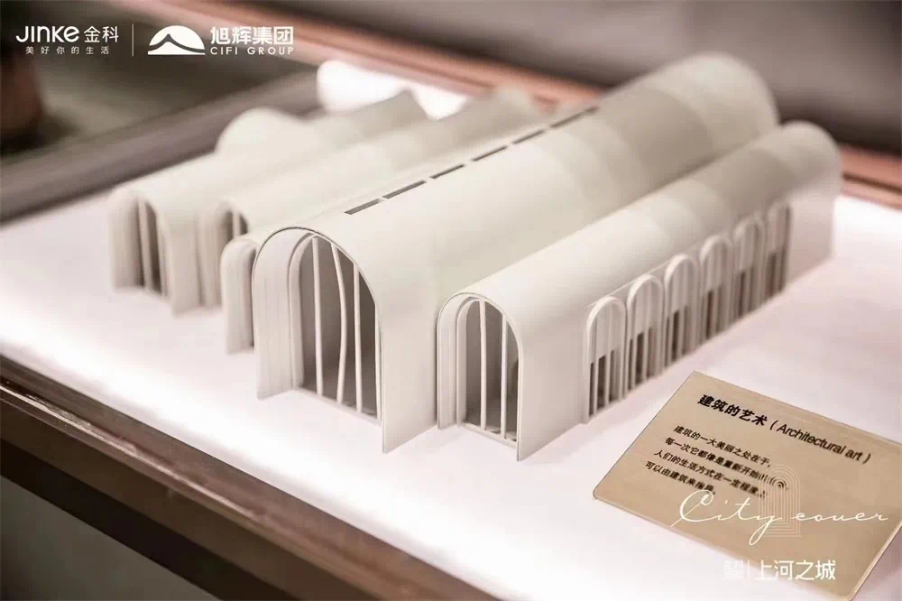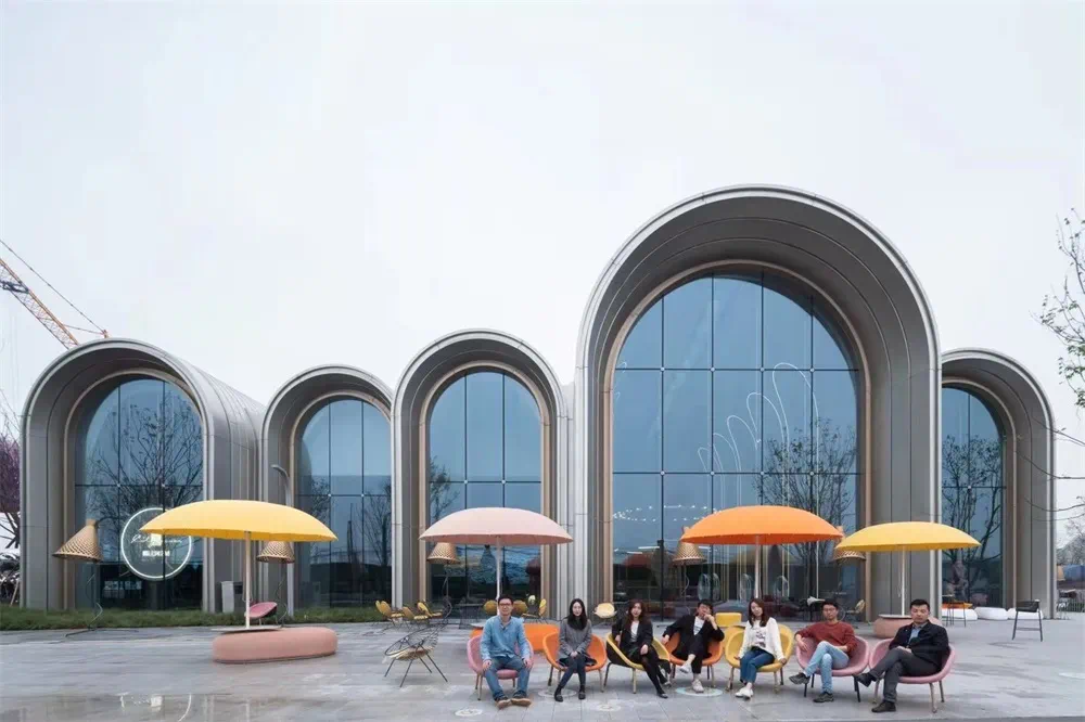 用视觉艺术实现生动的信息,从二维的图纸进入三维立体的多维世界,设计师不断运用几何逻辑关系对圆拱空间和内部高度进行调整,以满足空间使用的合理性和展示示范区的场景感和艺术性。