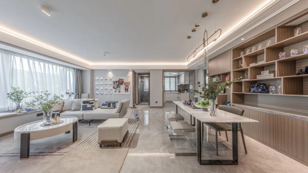 疫情期间的居家隔离让我们对「家」的共享空间有了多样性需求。于是,在温州美的旭辉城,设计师首次在温州推行CIFI6的方厅户型,直击客户敏感点,空间展示效果远超预期。为将方寸空间利用到优质,让各功能满足极限尺度的需求,设计师精打细算,研究人体工学,落地了区域属地化研发的四叶草90方户型,节省走道空间,减少公摊,做到零浪费,打造了具有竞争力的90方。