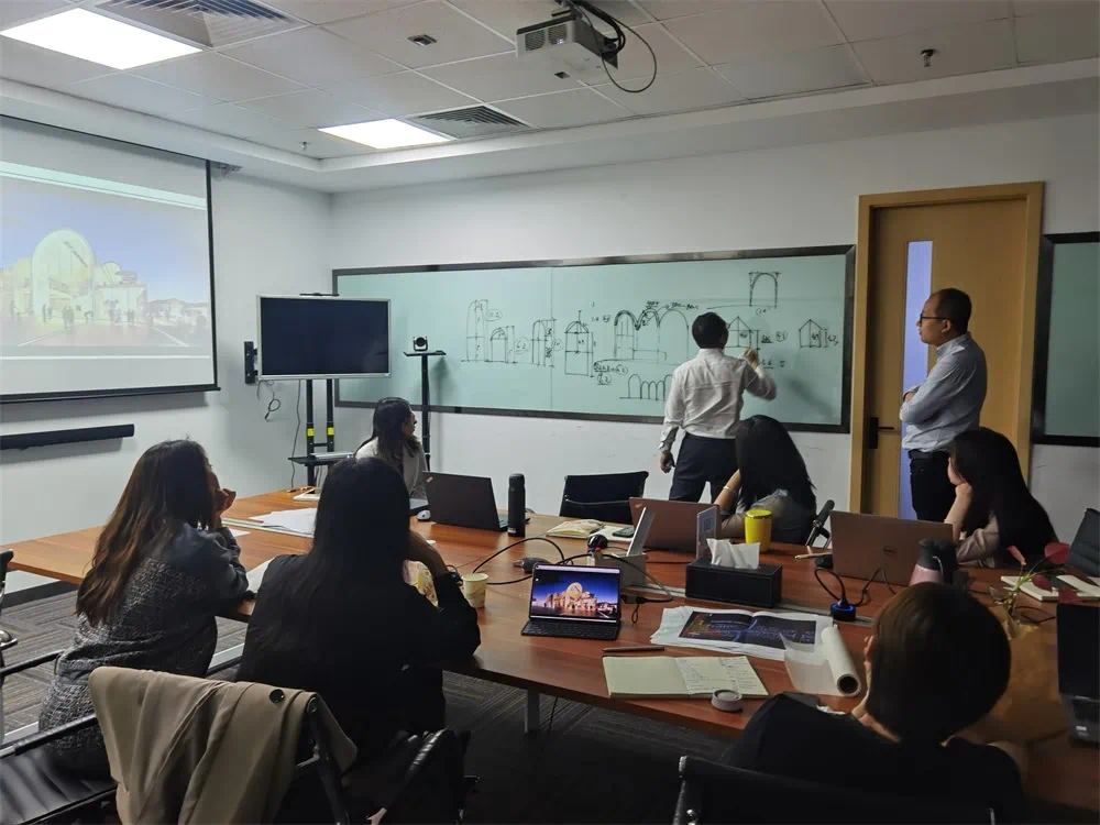 ▲赵欣总带领则水牌设计团队推敲大乌篷内部高度与室内空间的关系