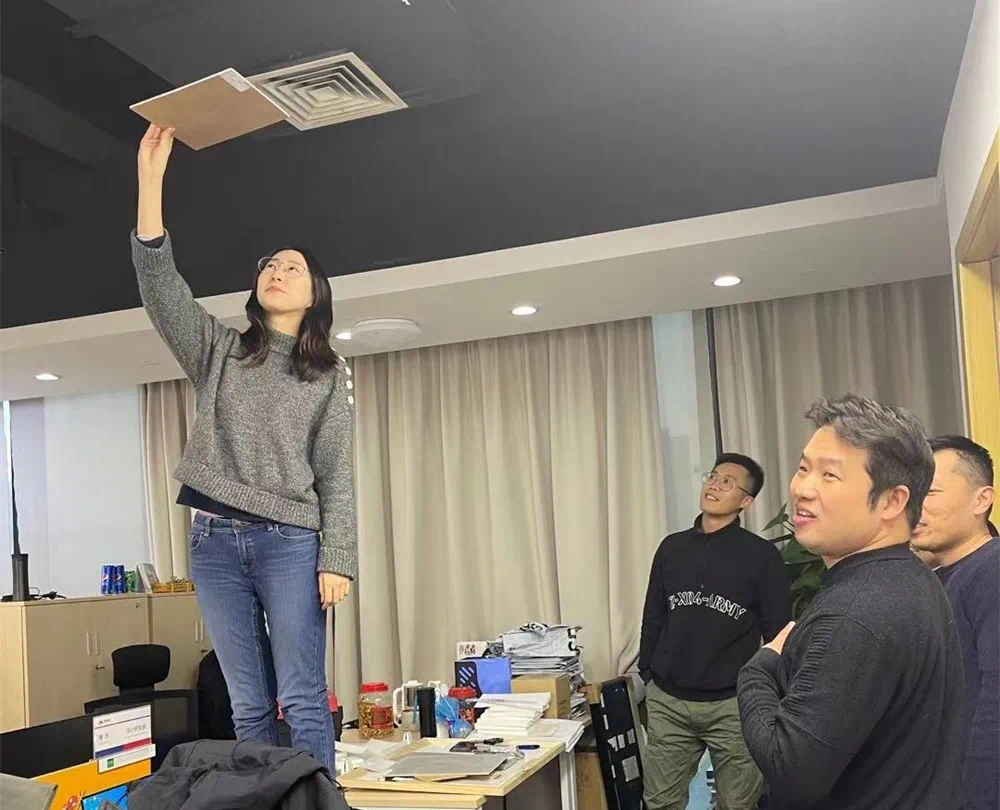 ▲旭辉设计总裁范逸汀与设计师团队共创