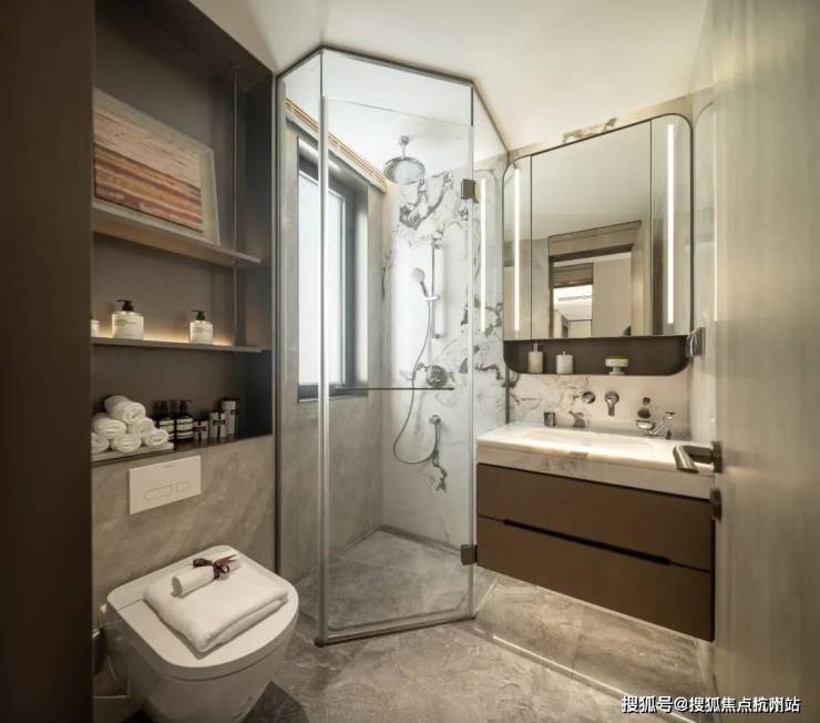 工艺上,基本都采用隐形安装方式,保持空间的整洁性。比如,卫生间花洒,悬挂于顶部,让视线更宽敞清。