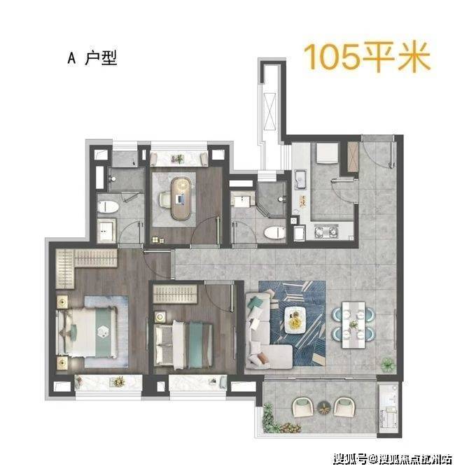 以99㎡三房两厅两卫户型为例,客餐厅连接景观阳台,采光面更大,为日常生活带来更多舒适感,双卫设计更为生活增添便利。105㎡三房两厅两卫户型,客餐厅与阳台一脉相连,居住空间感进一步扩大,约5.1米的宽厅,无论是日常休憩还是会客,都尽显大方得体。此外,项目中央空调、地暖、新风三大件配套齐全,且臻选大金等同级品牌空调地暖、老板和方太等同级品牌厨房配备、摩恩、弗兰卡、科勒等同级品牌卫浴配备,每一处细节都彰显着对居者的用心,为您打造高品质的居住环境。