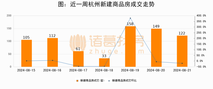 【杭州成交日报】08月21日新房成交122套、二手房205套;涨价房源64套