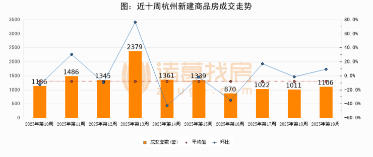 【杭州成交周报】第19周新房成交1106套,二手房1609套,涨价房源247套