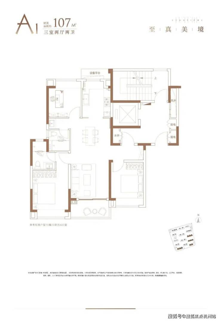 建面约107㎡3房2厅2卫户型