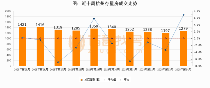 【杭州成交周报】第34周新房成交678套,二手房1279套,涨价房源255套