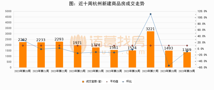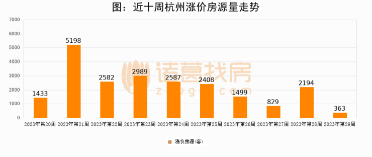 【杭州成交周报】第29周新房成交1369套,二手房1041套,涨价房源363套