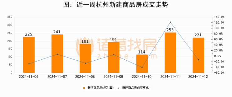 【杭州成交日报】11月12日新房成交221套、二手房313套;涨价房源69套
