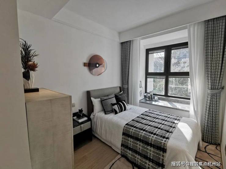 U型厨房,操作台与厨房动线符合人体工学设计,转身之间,洗、切、烹、炒流畅便捷,与餐客厅形成一条笔直的居家生活动线; 三间卧室全附带飘窗,拓宽了景观视野的同时,增加了实际空间使用率; 南向主卧做了带独立卫生间的套房设计,仪式感和私密性更强。