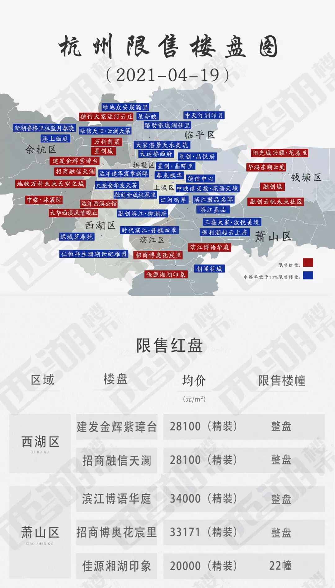 杭州的限售楼盘从2020年9.4新政以及2021年1.27日新政后,数量已达43盘,其中红盘16个,涉及7个板块;中签率低于10%的楼盘有27个,已覆盖了19个板块。
