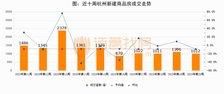 【杭州成交周报】第20周新房成交1012套,二手房1668套,涨价房源224套