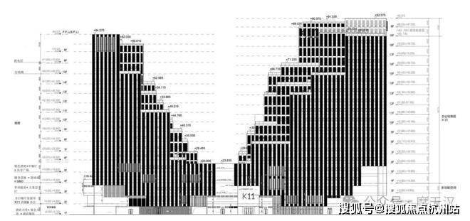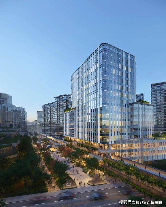 K11 ART MALL楼高9层,总建筑高度60.55米。K11 ARTUS效果图K11 ARTUS楼高18层,总建筑高度74.80米。把“龙井梯田”的理念融入建筑,以立体园林的巧思,两座塔楼随着高度增加逐层后退,在退层中种满绿色植物营造出空中花园。而塔楼之间在底层形成“城市峡谷”,这里是一个公共的开放式互动空间。这两座塔楼亦是整个项目制高点,瑰丽酒店规划了17层,K11 ATELIER规划了20层,最高建筑高度92.075米。不同地块之间以天桥或商业连廊的形式进行互联,就像杭州丝绸般丝滑与柔顺,新世界中国称之为“杭蕴绸带”,通过“杭蕴绸带”将K11 ART MALL、K11 ARTUS、K11 ATELIER、ROSEWOOD、国际社区“江明月朗园”五大顶级业态被丝滑串联起来。