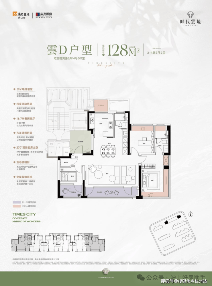 而时代雲境的类一梯一户设计,为每户预留了独立的电梯厅。