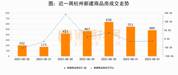 【杭州成交日报】09月01日新房成交484套、二手房119套;涨价房源64套