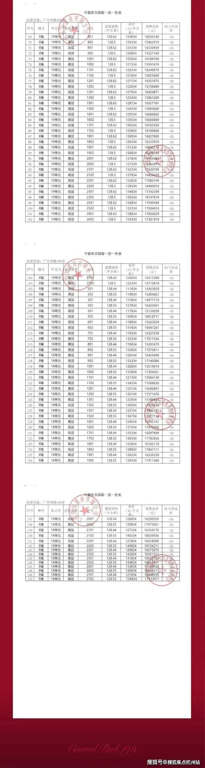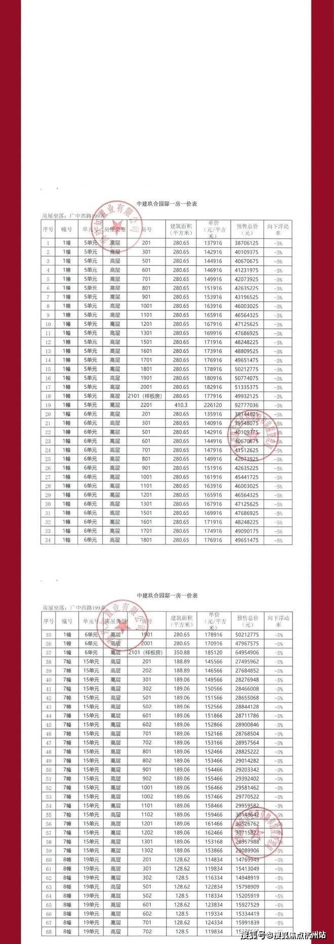 中建玖上琅宸一房一价表: