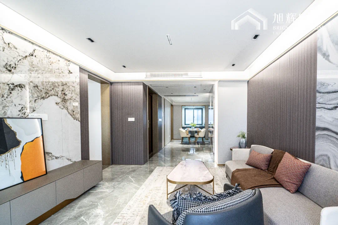 客餐厅作为家中高频使用的地方,尺度与格局承载着一个家庭的幸福。旭辉府进阶四室用玄关将客厅、餐厅独立分割,完成生活动区空间的较大化,让生活更有序。