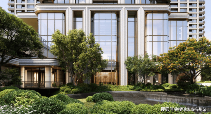 三层归家动线:从地面景观层到架空层,再到入户层,穿越绿植、光影与水景,步步进入私域。