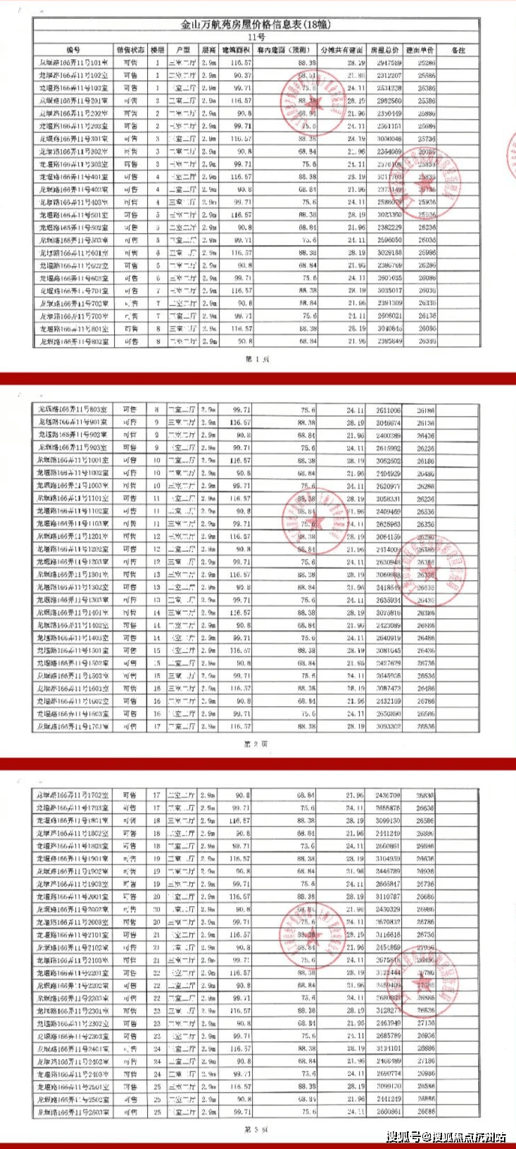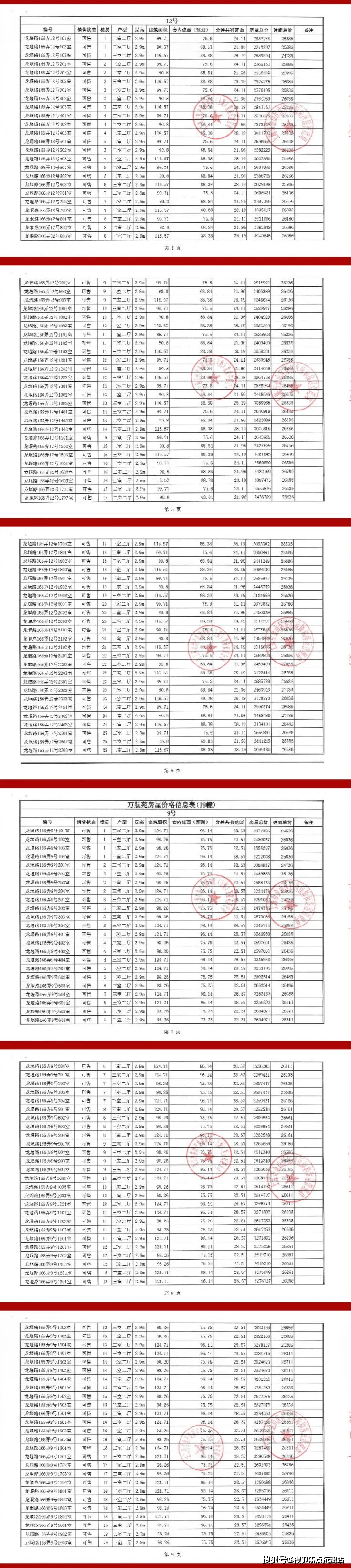 上期一房一价表