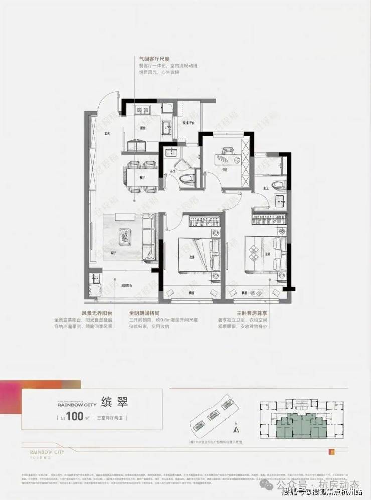 建面约100方户型: