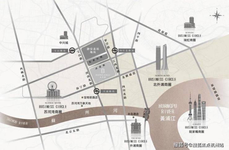 摩登生活的璀璨演绎:3公里范围内,汇聚苏河湾万象天地、北外滩商圈、瑞虹商圈、南京西路商圈、外滩商圈、陆家嘴商圈等,东南侧步行可达18街坊,西南侧在建安康苑、湾上综合体地块。