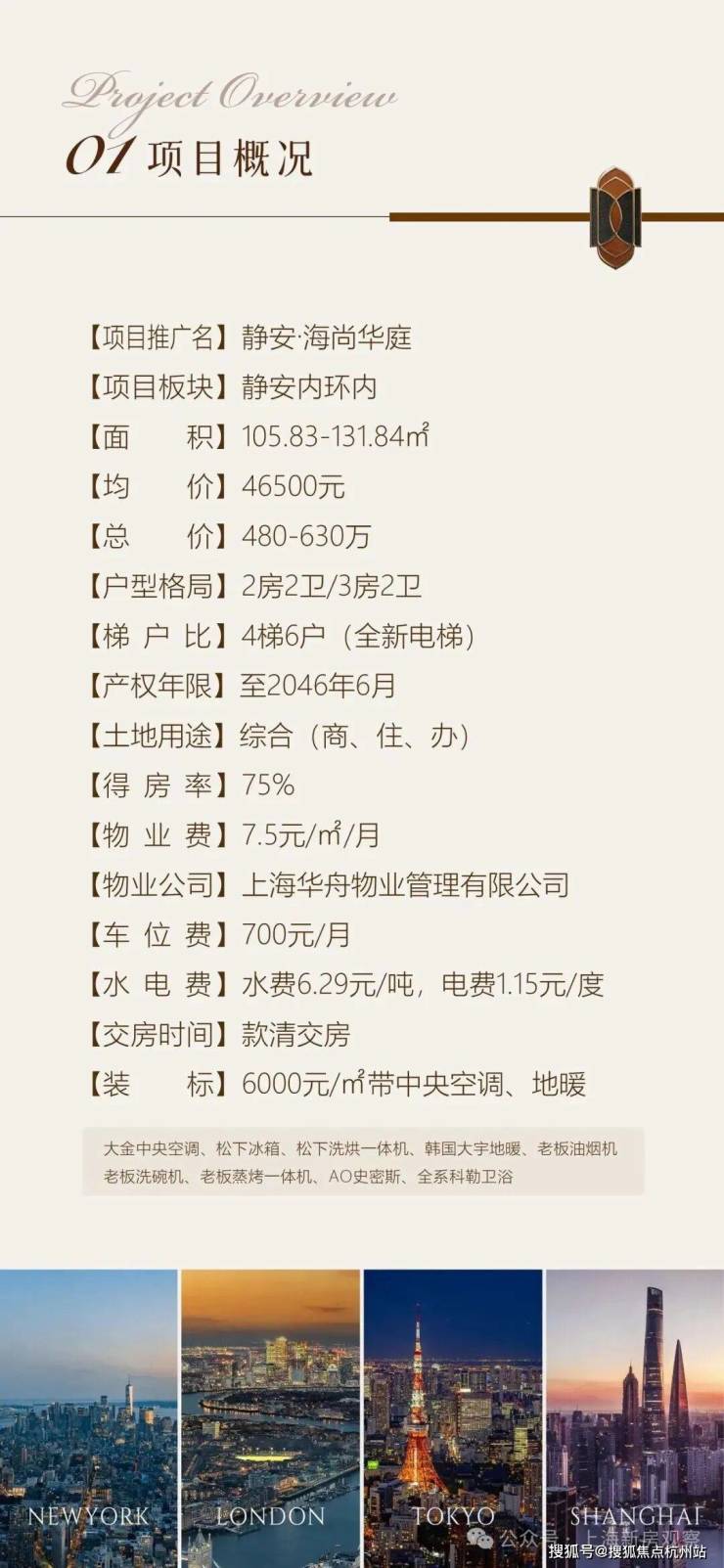 最新消息,静安内环内,新出优质项目【静安-海尚华庭】推售建面约105-108-120-131m²2-3房;均价4.65万/m²,总价480-630万;装标6000元/m²
