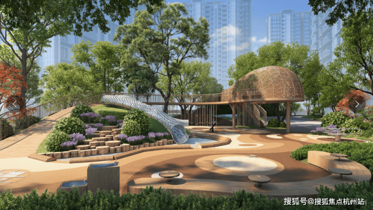 社区内部,「缦云上海」选择将立体景观、公共设施、四季植物等错落有致的折叠进社区园林,以“两轴、一环、双客厅、双乐园”营造艺术“微度假”轻氧社区,结合“拾光庭、灵感中心、折叠聚场、沐光旅程、小MAN计划、时空花园、Keep能量环”七大景观亮点,打造移步异景的美学园林,体验景观与生活交融之趣。