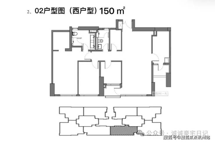 标准层建筑层高3.3米,得房率约77.4%,三梯四户,使用私密性较好。