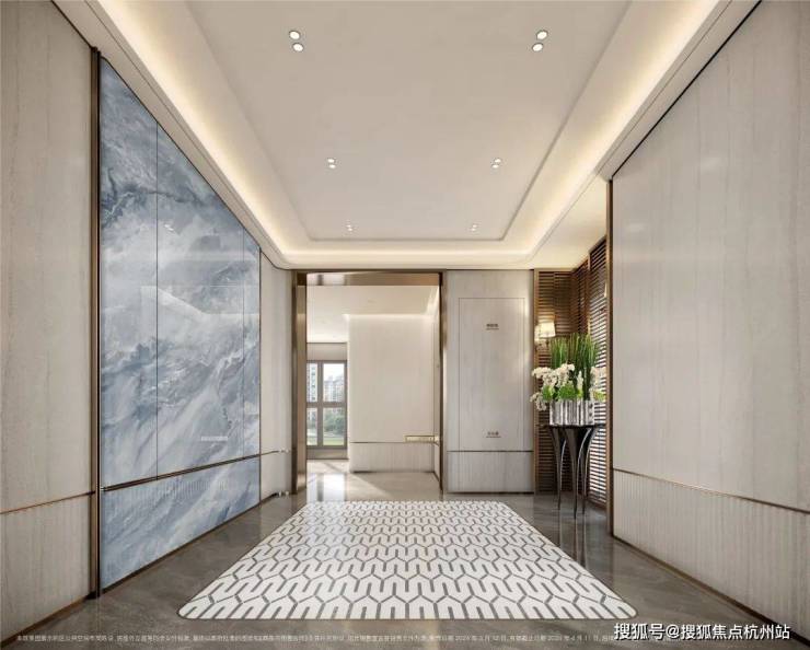 入户整排顶天立地玄关柜,预留内嵌S墙,超全超大储物空间纳藏生活琐碎;