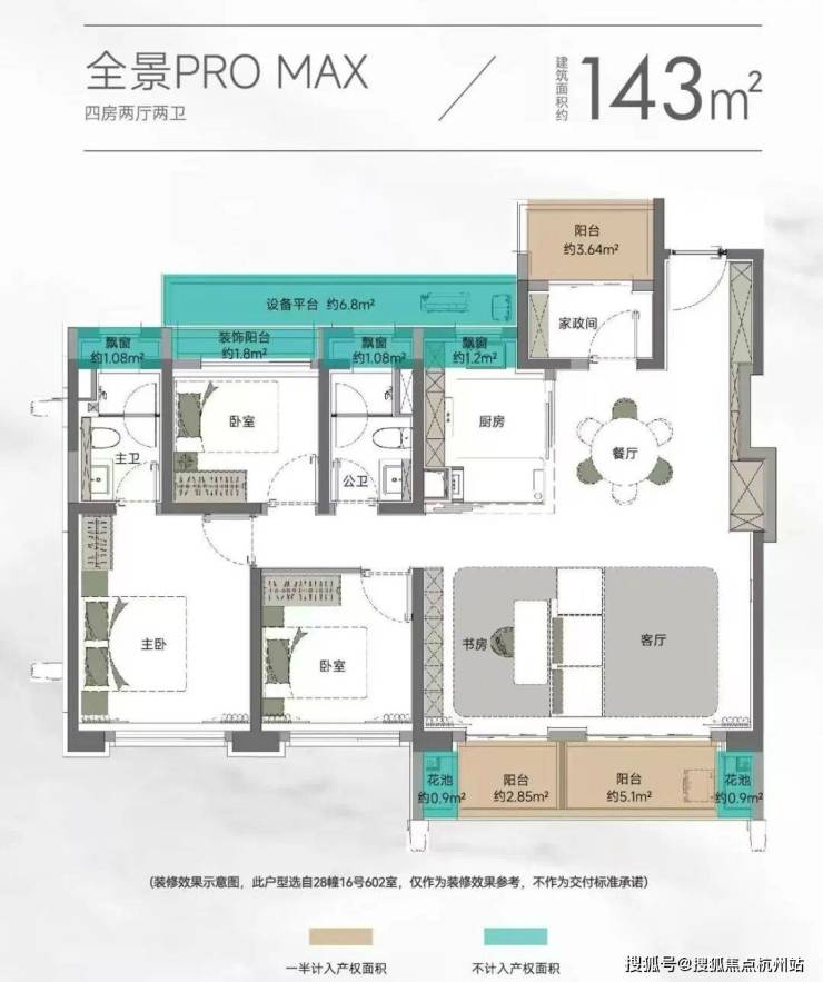 以105㎡的户型为例, “三阳台”搭配花池的设计,直接性价比拉满,按照规定: 阳台计一半面积,花池不计面积,加上 主卧+卫生间还带飘窗(主卧飘窗非承重结构),如此算下来,对购房者而言,日常可以实打实 利用到的面积是远超市面上其他三房产品。