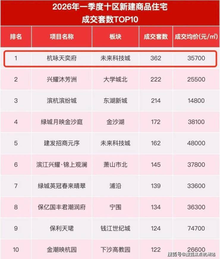 疯狂的是,权威业界权威机构克而瑞数据显示:2026年3月20-26 日,一周不到,保利天奕就成交了114套,位居杭州商品住宅成交第一。