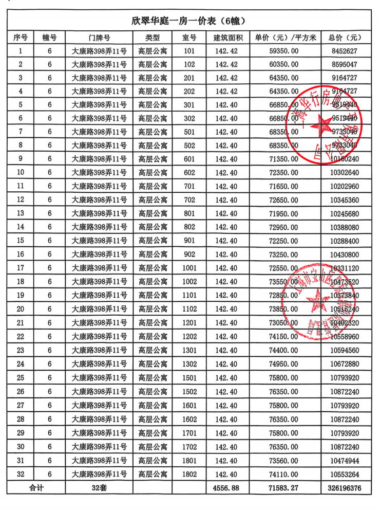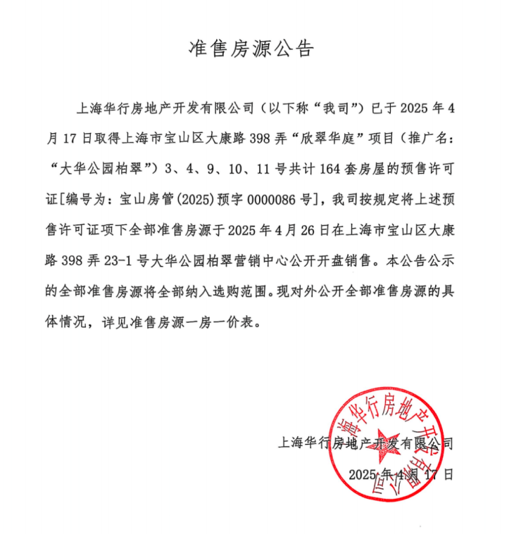 并且更重要的是,就在4月17日,项目收官房源也正式取证了!《房在上海》拿到了独家首发一房一价表! 「大华·公园柏翠」6批次加推164套房源,均价65327元/㎡,建面约101-142㎡3-4房,火爆认购!