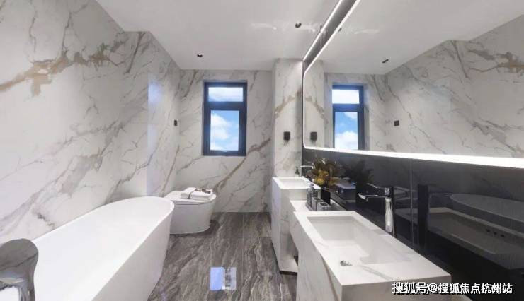 打造的套房式主卧,则满载诚意和用心,除了功能,更多的是人性化的场景考量。独立双台盆卫浴设计,让男女主人在忙碌的高峰时段也可从容洗漱。