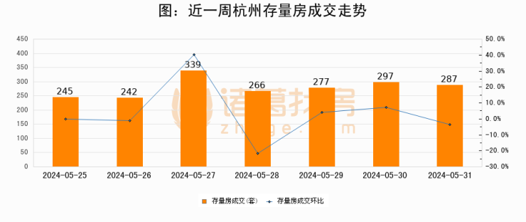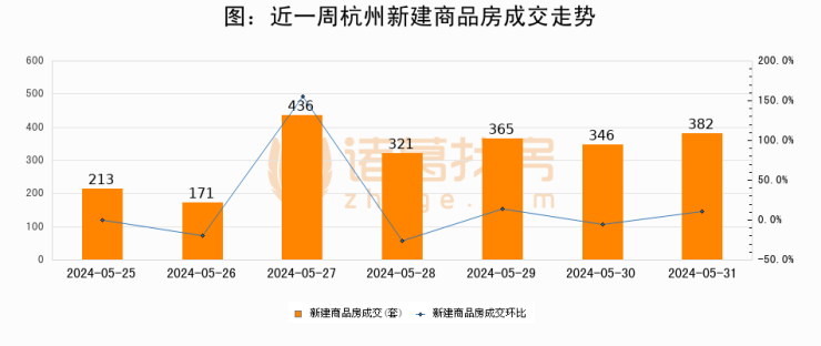 【杭州成交日报】05月31日新房成交382套、二手房287套;涨价房源92套