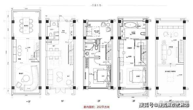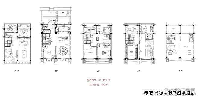 双拼户型平面布局(建筑面积180㎡,使用面积432㎡)