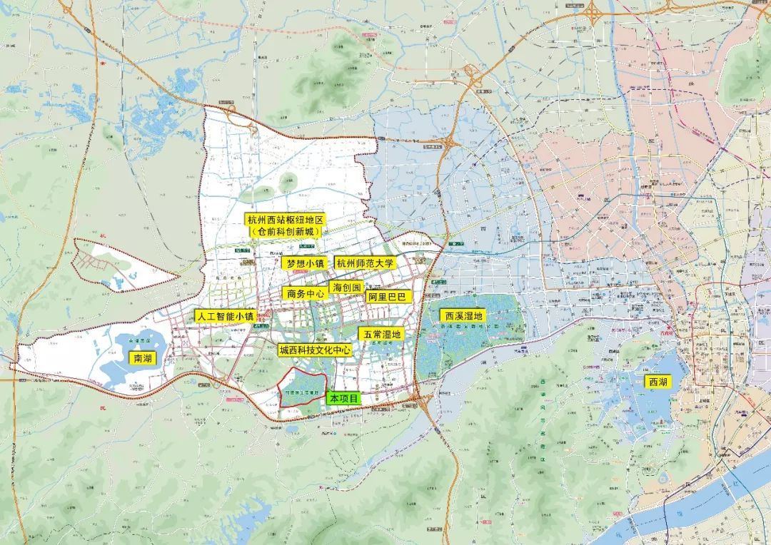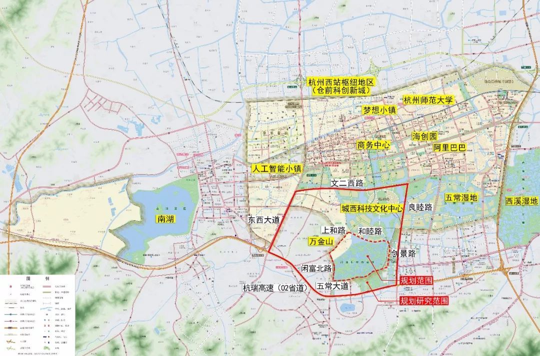 良睦路以东闲林五常水乡以点状保护式开发模式打造湿地水乡城市公园、高端投融资企业集聚区,良睦路以西、和睦路以北打造体现城西科技文化特色、彰显杭州国际品质、产城人融合发展、辐射杭州西部市域的公共中心。