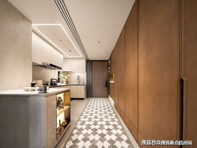 更让人惊喜的是,这里还有 智能家居系统、消毒鞋柜 以及用于 冰箱内嵌冰箱的“S墙” 。仅仅是入户这一部分,就已经亮点满满,让人充满期待。可以想象,在这样的空间里生活,每一天都如同置身于梦幻之中。